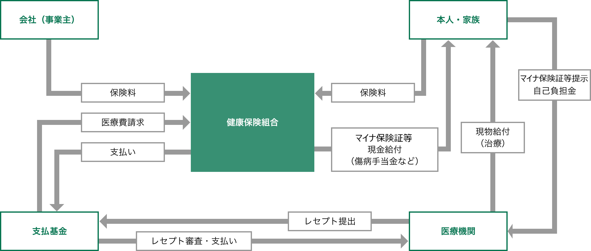 病気やけがをしたとき、私たちは医療機関の窓口へマイナ保険証または資格確認書を提示して、医療費の一部を自己負担します。残りの医療費については、医療機関が社会保険診療報酬支払基金(支払基金)という機関を経て、健保組合に請求します。健保組合では、その請求書(診療報酬請求明細書=レセプト)に間違いがないかを確認したうえで、再び支払機関を通じて、医療機関に支払います。